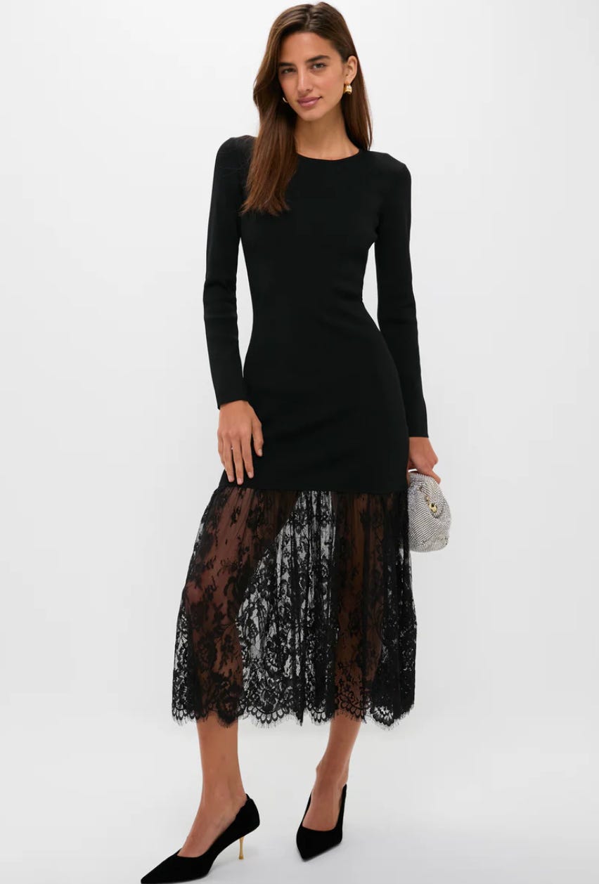 This knit dress with lace skirt is the perfect comfy chic option for a night out.