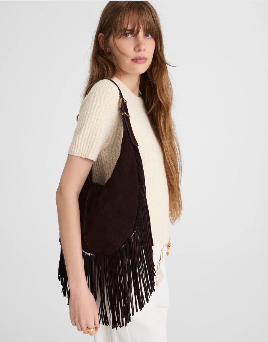 The influx of bohemian and cowboy aesthetics means fringed accessories are everywhere. This Madewell bag is at a terrific price point.