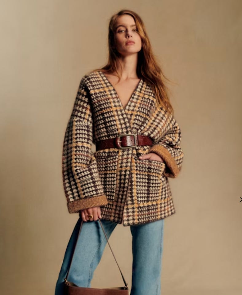 This herringbone sweater from Sézane is giving chic college professor - make sure to add a wide belt like they did.